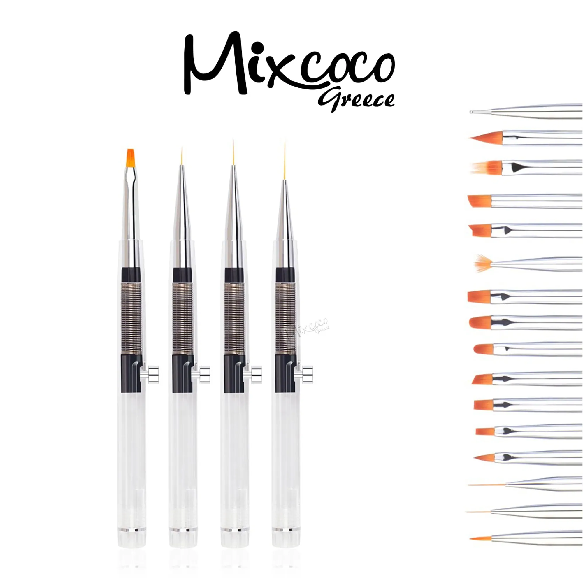 Η Κασετίνα με Πινέλα Nail Art 20τμχ περιλαμβάνει 4 βάσεις πινέλων Nail Art , 15 ανταλλακτικές κεφαλές πινέλων για όλες τις διεργασίας του Nail Art και μία κεφαλή Dotting Pen! SKU: 0050750
