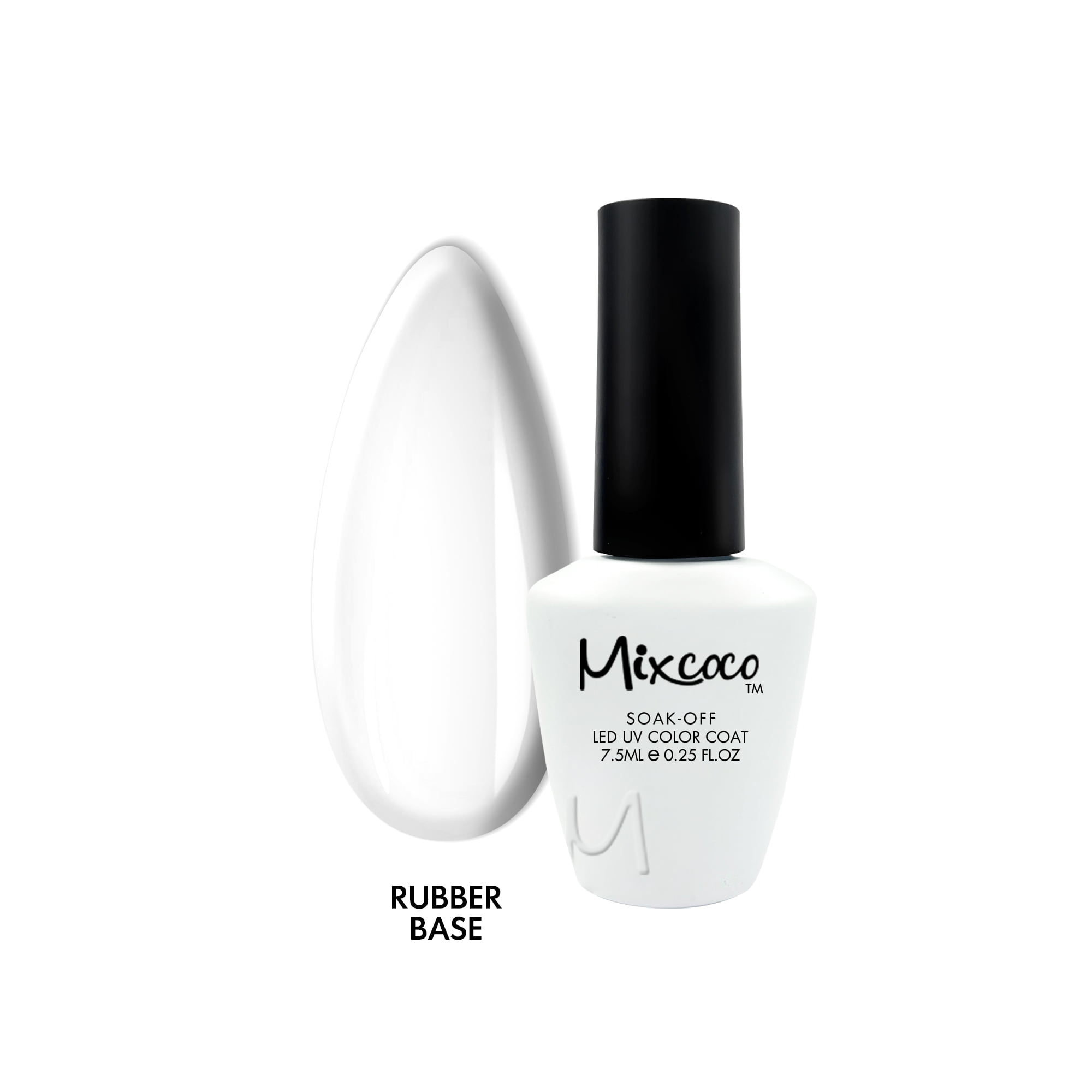 H Rubber Base (Βάση Καουτσούκ) Mixcoco 7,5ml ενισχύει και διορθώνει τις ατέλειες του φυσικού νυχιού, προσφέροντας ομοιόμορφη κάλυψη και μεγαλύτερη αντοχή στο βερνίκι. SKU: 0049598