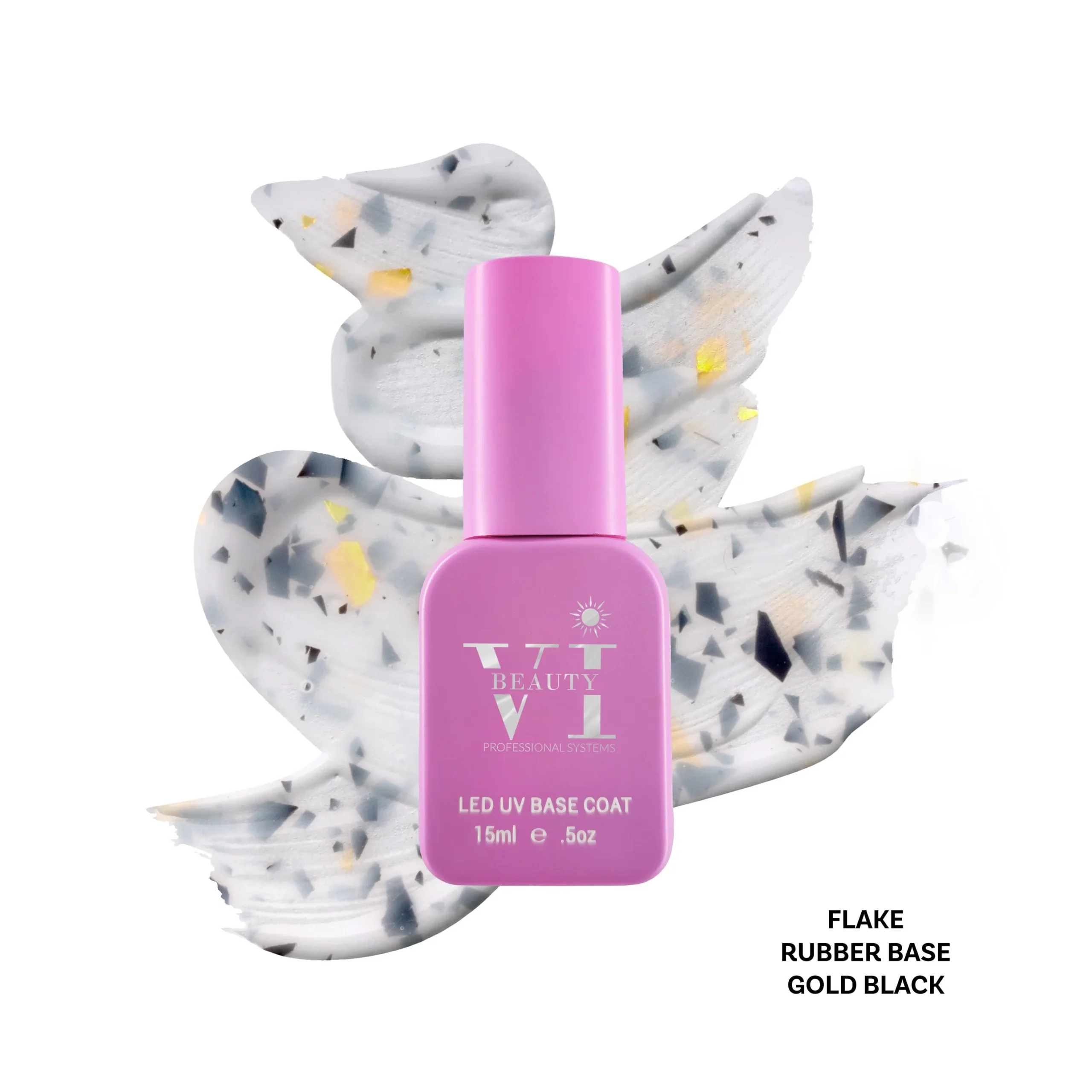 Eνισχυμένη βάση Rubber Base με σύνθεση από καουτσούκ. H Rubber Base Black-Gold Flake15ml (Βάση Καουτσούκ) ενισχύει και διορθώνει τις ατέλειες του φυσικού νυχιού, προσφέροντας ομοιόμορφη κάλυψη και μεγαλύτερη αντοχή στο βερνίκι. Νέα πρωτοποριακή βάση σε milky απόχρωση με χρυσά και μαύρα flakes για εντυπωσιακές και πρωτότυπες δημιουργίες!