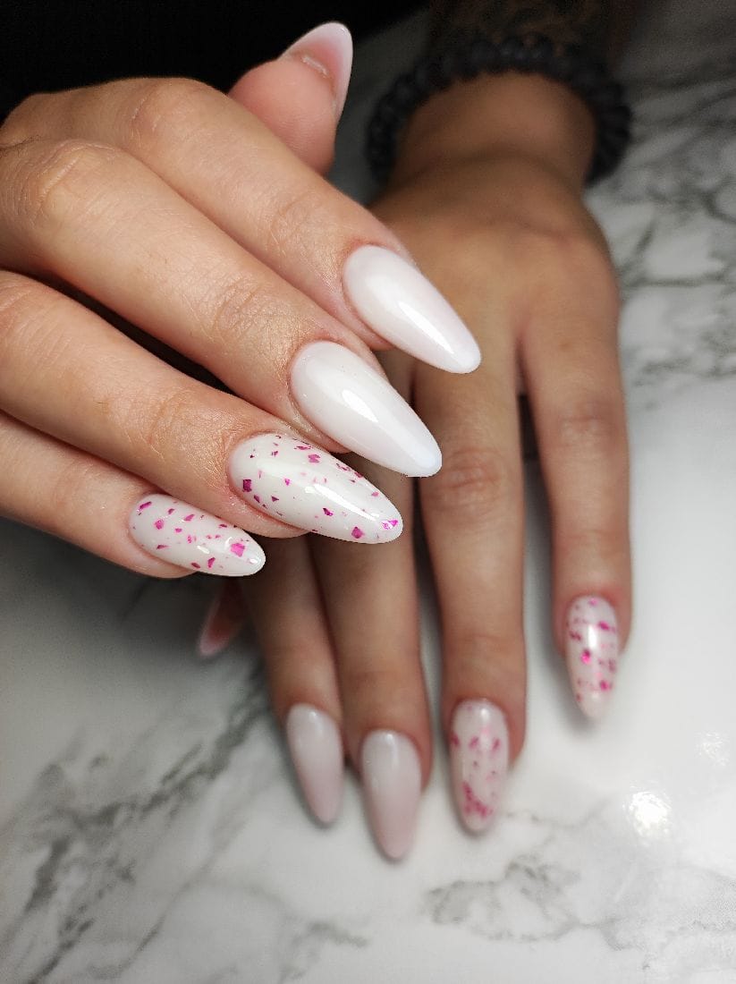 Eνισχυμένη βάση Rubber Base με σύνθεση από καουτσούκ. H Rubber Base Milky Pink Flake 15ml (Βάση Καουτσούκ) ενισχύει και διορθώνει τις ατέλειες του φυσικού νυχιού, προσφέροντας ομοιόμορφη κάλυψη και μεγαλύτερη αντοχή στο βερνίκι. Νέα πρωτοποριακή βάση σε milky απόχρωση με ροζ flakes για εντυπωσιακές και πρωτότυπες δημιουργίες! Συνιστάται μία στρώση rubber base clear πριν την εφαρμογή των flake rubber base.