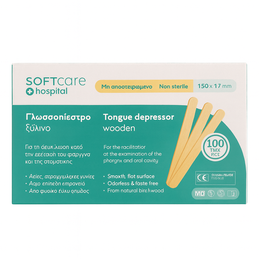 Soft Care Tongue Depressor – Γλωσσοπίεστρα Ξύλινα 100τεμ 150x17mm